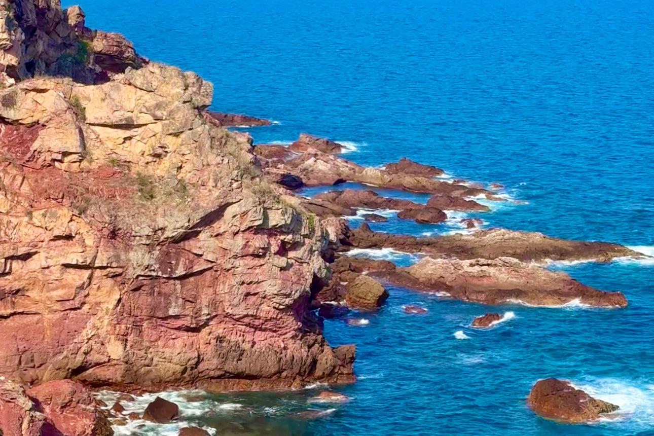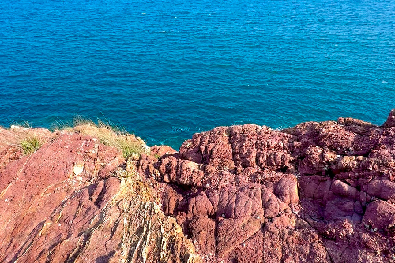 赤洲最初因其鮮艷的赤紅色岩石而聞名,這些岩石由沉積岩層形成,歷史可追溯至約1.42億年前的侏羅紀晚期,島上擁有陡峭的懸崖、如畫的岩石形態。